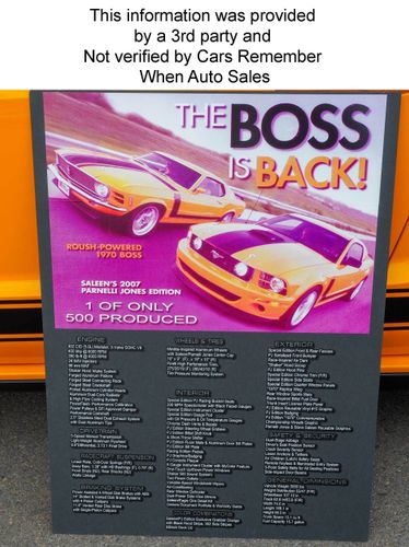 This 2007 Saleen Parnelli Jones Boss 302 is #469 out of 500 produced and is an excellent low mileage example showing only 206 original miles. Equipped with a Saleen-tuned 5.0L V8 paired with a five-speed Tremec manual transmission and an 8.8” rear differential with a 3.73:1 gear ratio. Original MSRP of $60,565 and only asking $44,900 today!