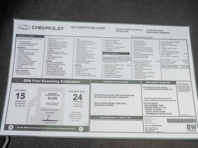 10,079 Original Mile 2012 Corvette Z06 Centennial Edition 3LZ
