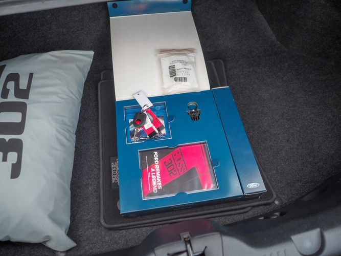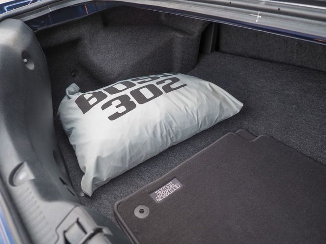 Includes Boss 302 car cover and Boss 302 floor mats with gray embroidered Boss logo.