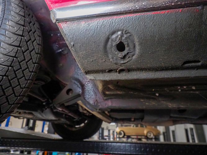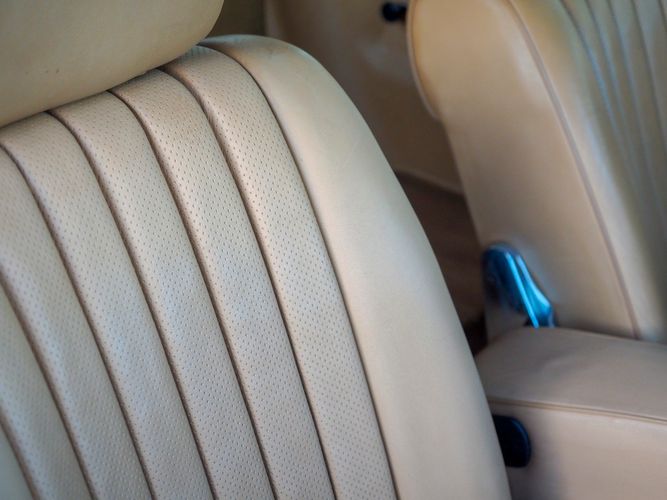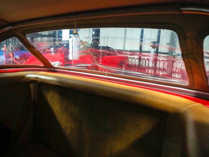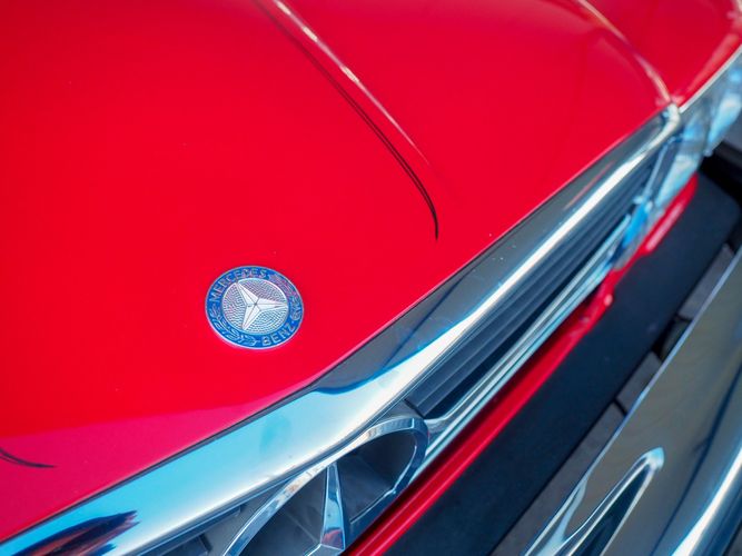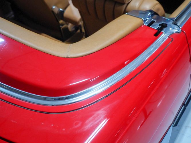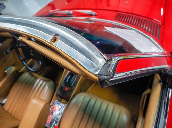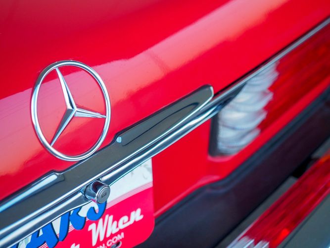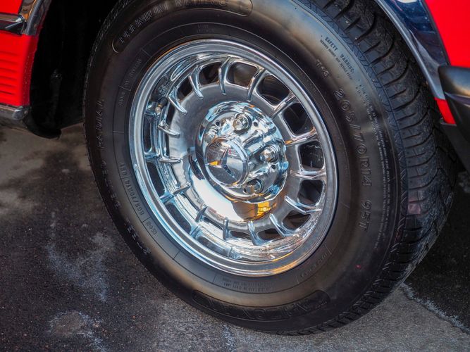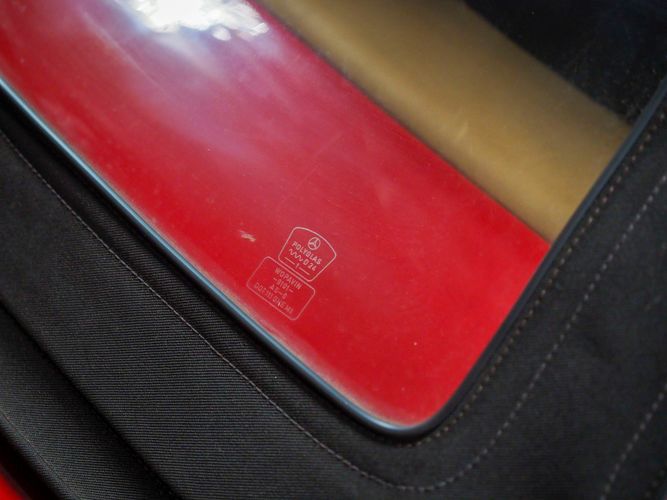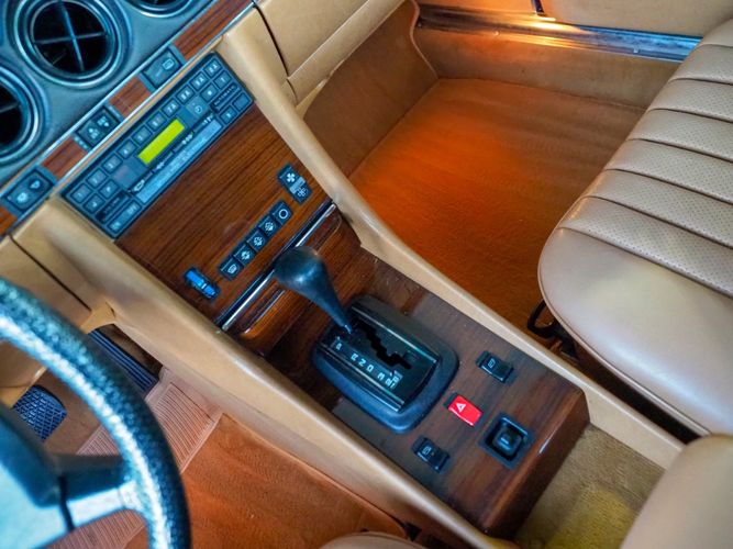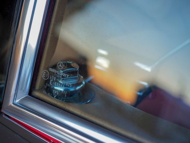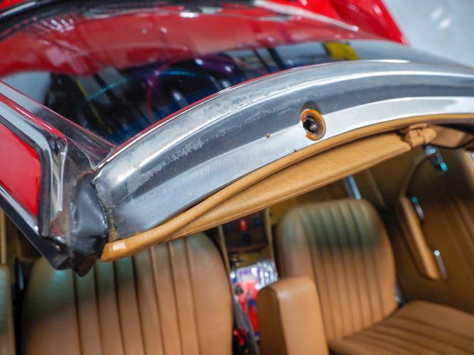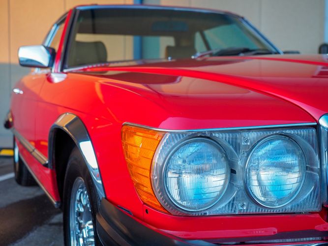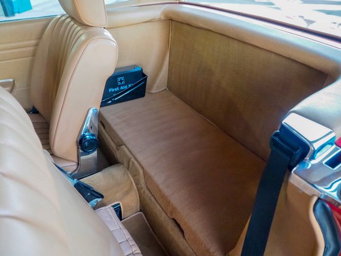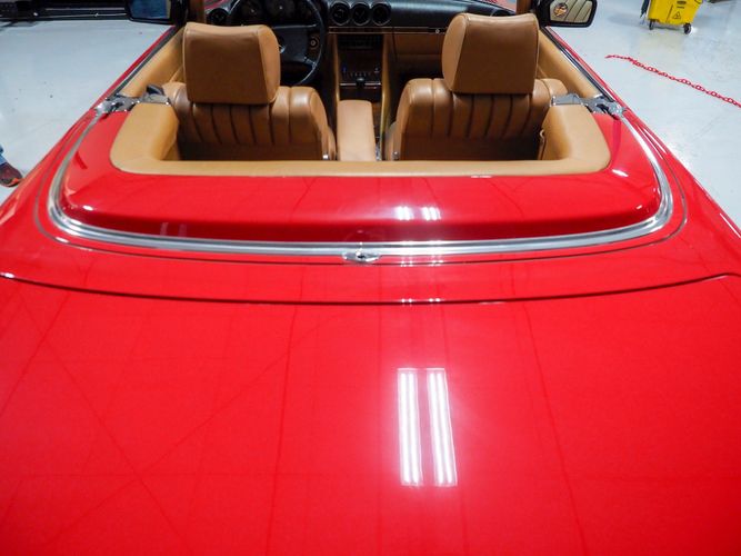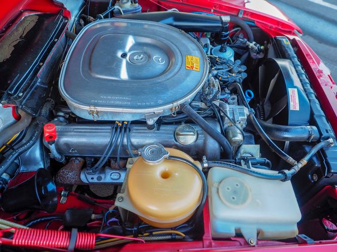 This particular 380SL comes from a good home and was extremely well cared for. It is sporting its factory original red paint in excellent condition. The body on this car is razor straight and has a great shine. Complete with factory chrome wheels, OE glass, trim and a removable hardtop, there is no classier way to get around!