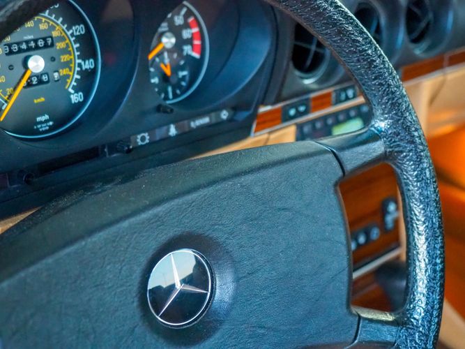 Opening the door exposes the original 1983 leather seats in excellent condition and still have that Mercedes-Benz fresh smell. The interior is in extremely good condition; almost hard to believe it is 36 years old! The dash and gauges are a timeless design with a very stylish flair even with today's standards. This is by far one of the classiest cars to get around in, and this is an excellent like new example!