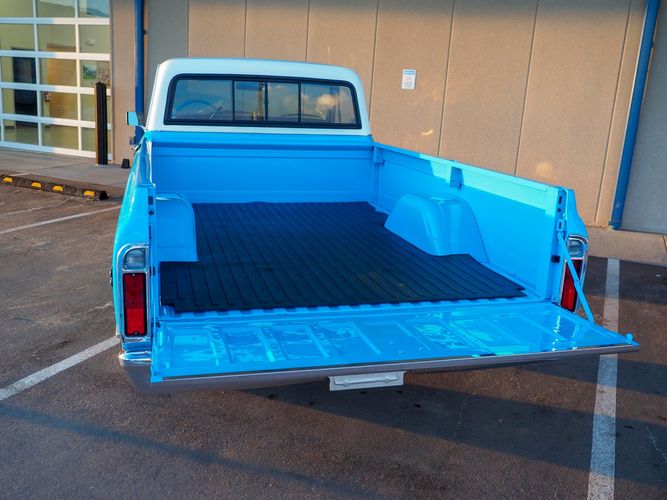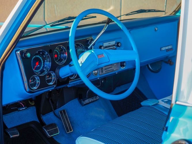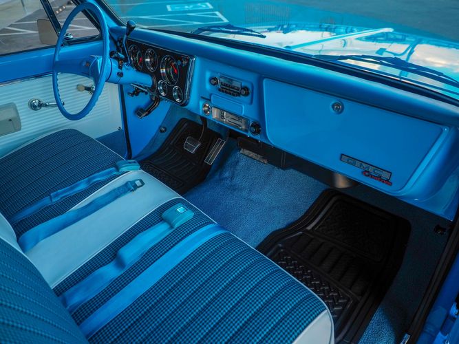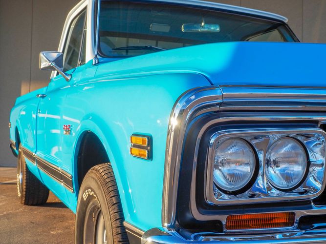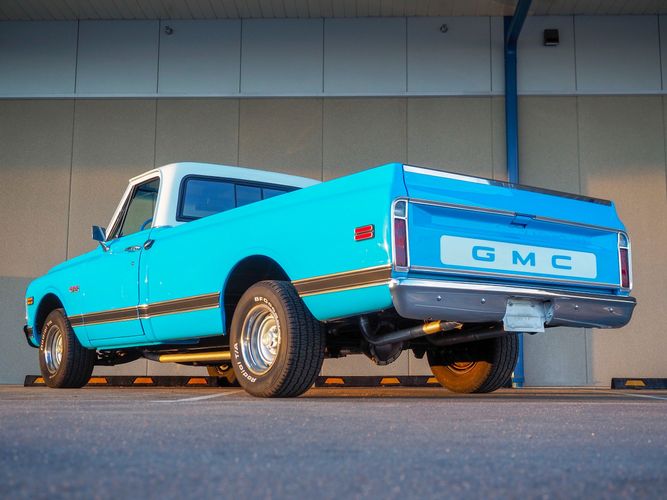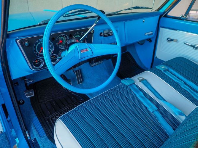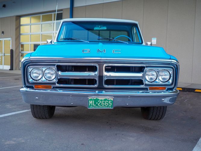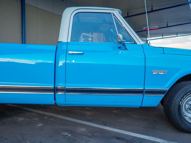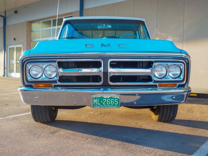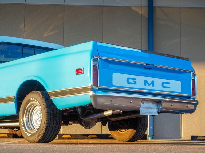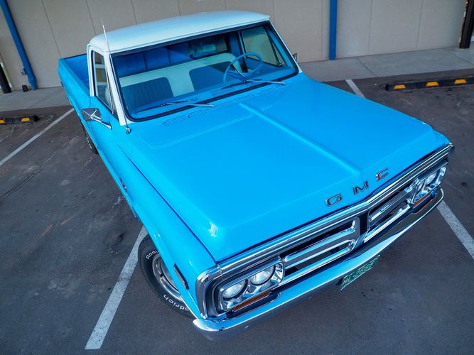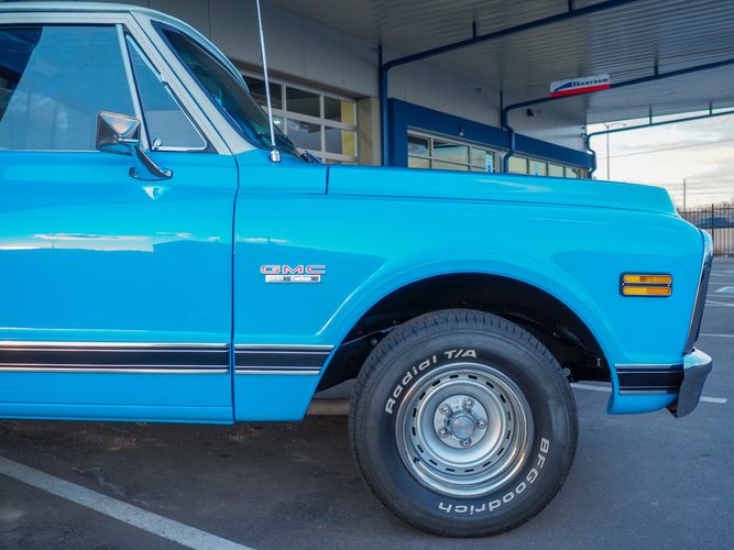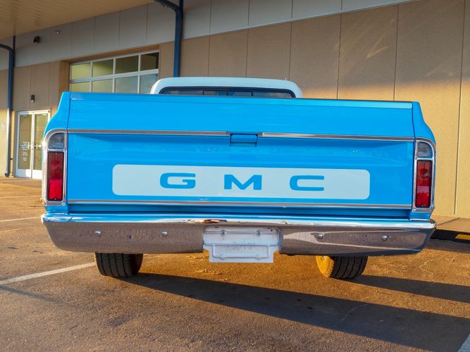 You are looking at an excellent restored pickup with a gorgeous light blue paint and razor straight body. This truck is 100% ready to go and needs nothing. It underwent an extensive nut and bolt frame-off restoration, with only 2500 miles since completed! The overall fit and finish is top notch and its even more interesting that's it's a GMC! The doors are aligned nicely, close easy and the entire truck has a beautiful shine to it. The interior is fully restored with new everything. It features: the original radio, refurbished factory gauges with a factory tach, nice matching blue/white bench seat and a like-new restored steering wheel. This truck is almost better now then it was in 1972!