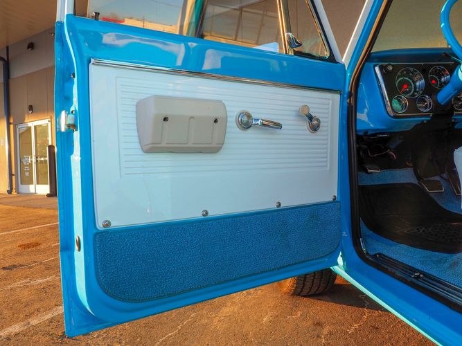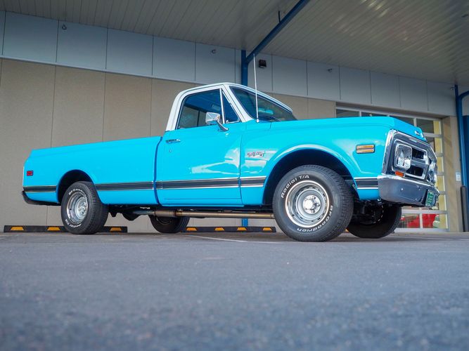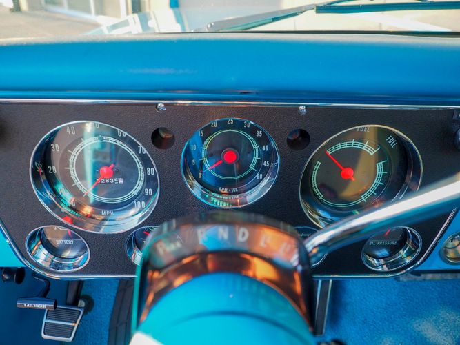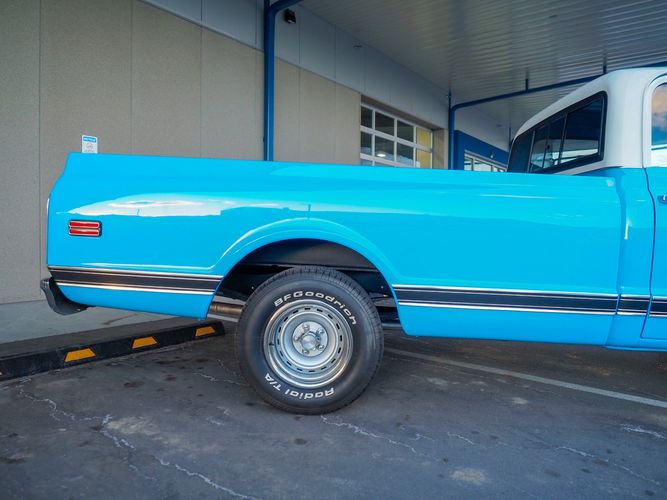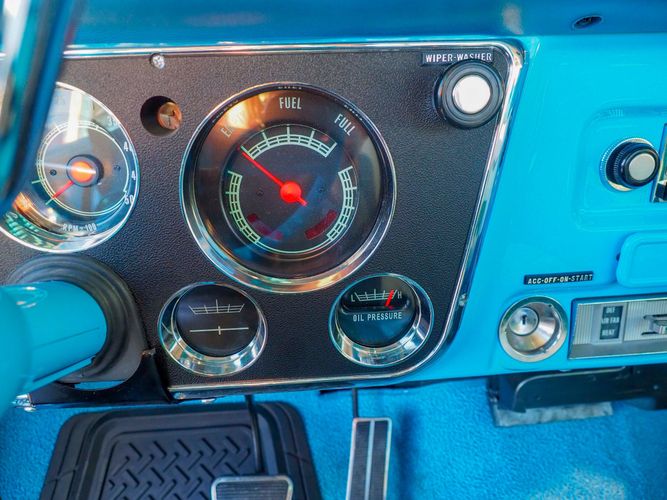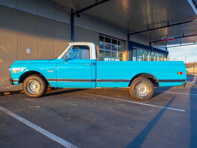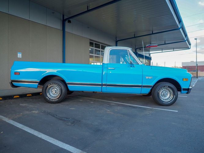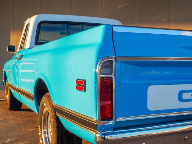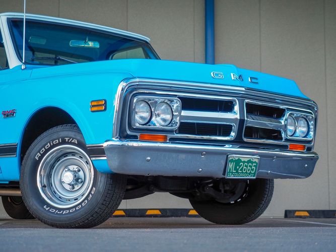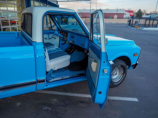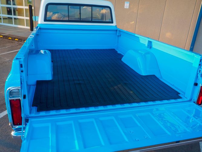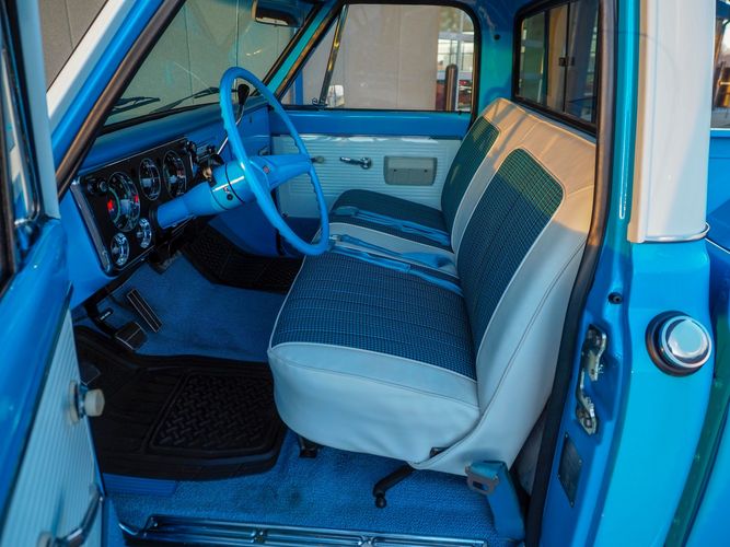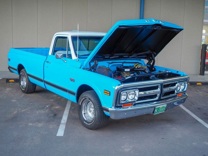 You are looking at an excellent restored pickup with a gorgeous light blue paint and razor straight body. This truck is 100% ready to go and needs nothing. It underwent an extensive nut and bolt frame-off restoration, with only 2500 miles since completed! The overall fit and finish is top notch and its even more interesting that's it's a GMC! The doors are aligned nicely, close easy and the entire truck has a beautiful shine to it. The interior is fully restored with new everything. It features: the original radio, refurbished factory gauges with a factory tach, nice matching blue/white bench seat and a like-new restored steering wheel. This truck is almost better now then it was in 1972!