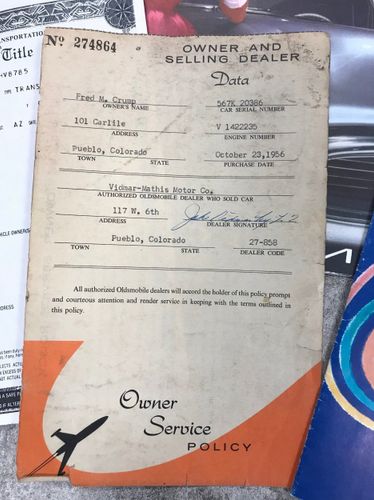 This car has lot's of original documentation (see end of photo gallery) such as; a copy of the original title, original owners manual, marketing brochures, an "Owner Service Policy" slip filled out with the original purchaser's name and an original accessories/options booklet.