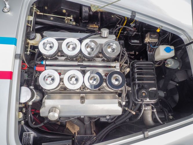 - All-aluminum stroked 427 cubic inch V8 (Windsor based)