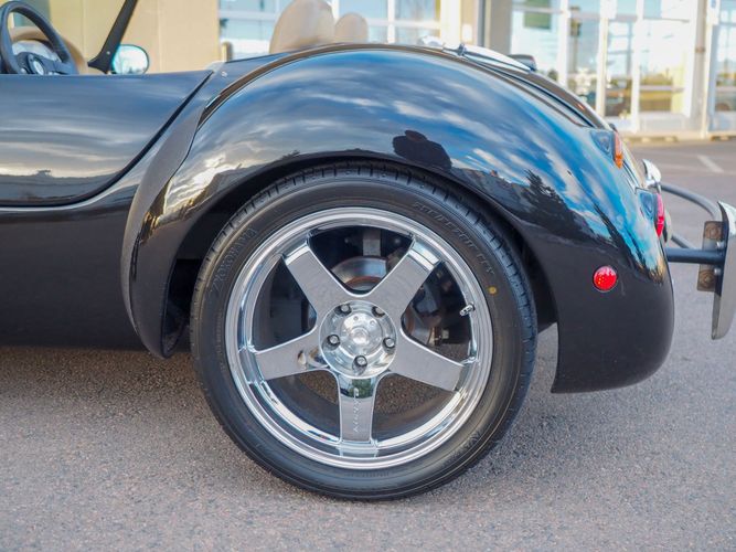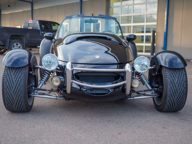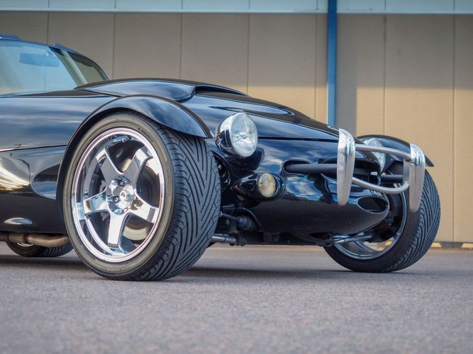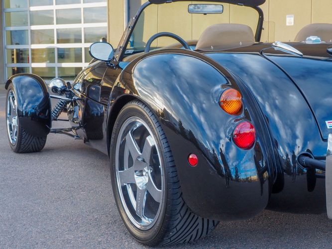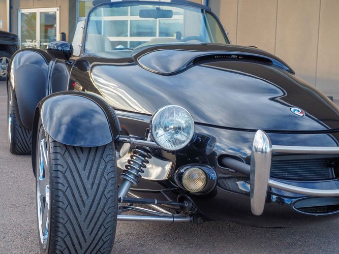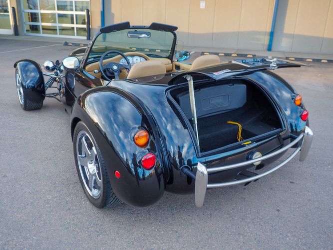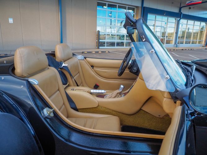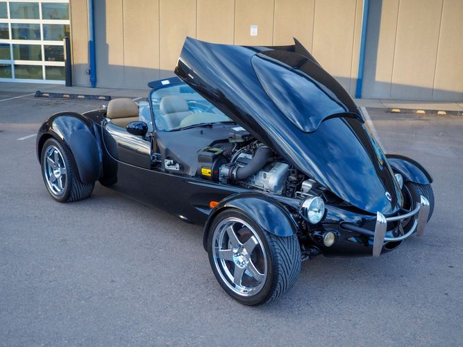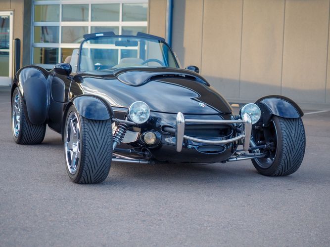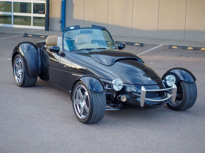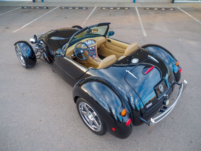 This 1997 Panoz AIV Roadster is one of 176 produced between 1996 and 1999. It features a superplastic-formed aluminum body with fiberglass fenders. It is powered by the powerful DOHC Ford Cobra V8 engine and paired with a 5-speed manual transmission. It is finished in Black Metallic paint over a tan leather interior. With its lightweight body and chassis, this vehicle provides a unique driving experience unlike any other. It is offered for sale by Cars Remember When Auto sales with 14,540 original miles. CALL TODAY 720-465-5104
