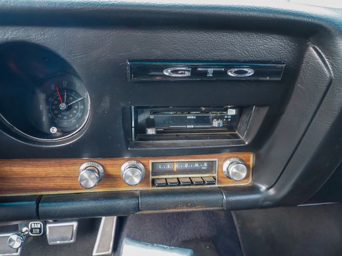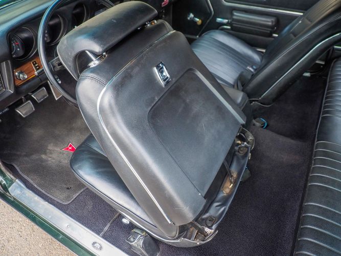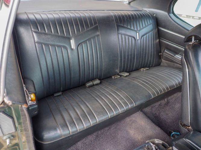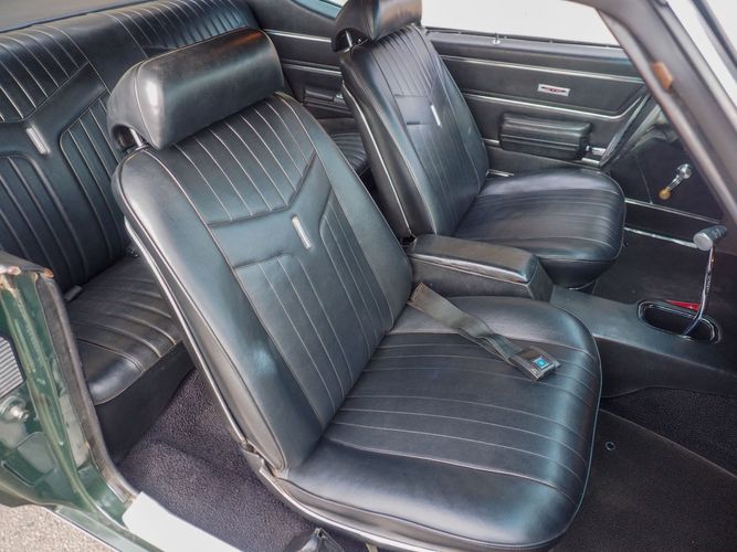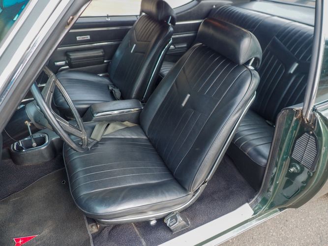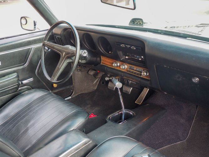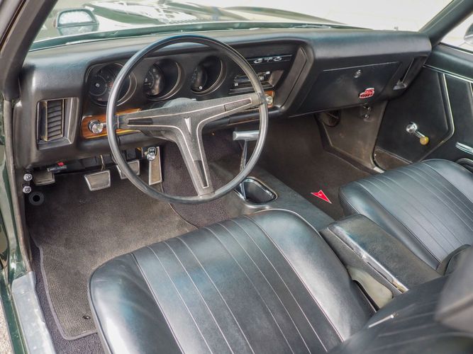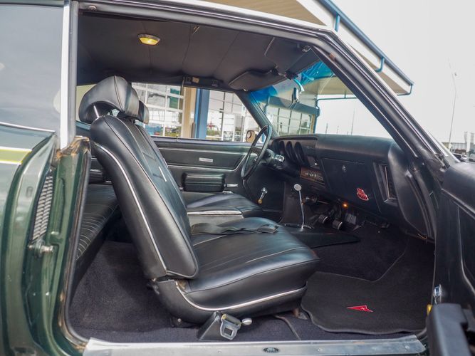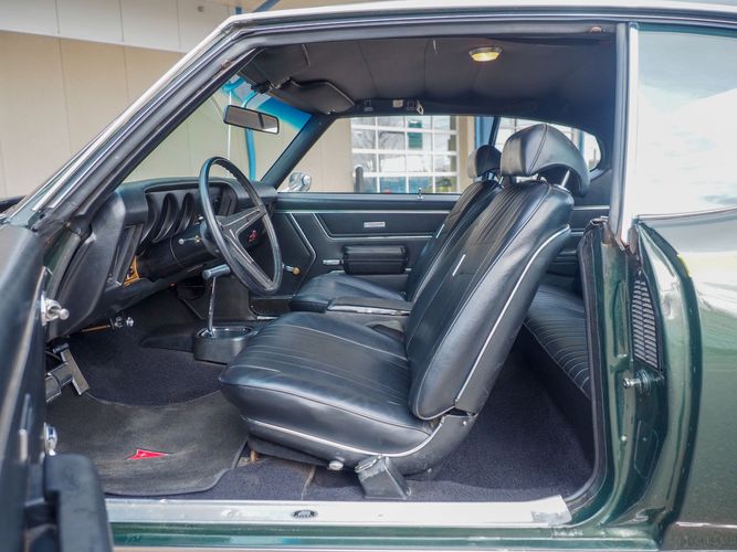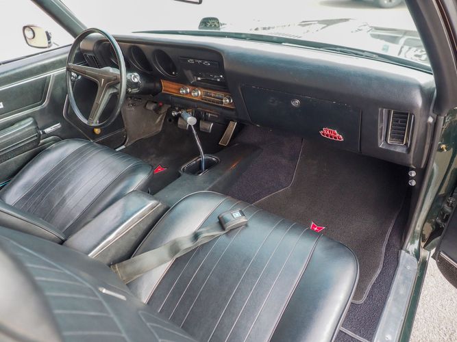 The appearance of this GTO is a very good driver quality. It is finished in its original color; Midnight Green. The color makes this a rare and unique Judge as you do not typically see them in this color. The black bucket console interior retains a lot of originality, we would consider the interior of this car to be in survivor condition. The sheet metal on the car appears to be all original as far as the floors and quarter panels.