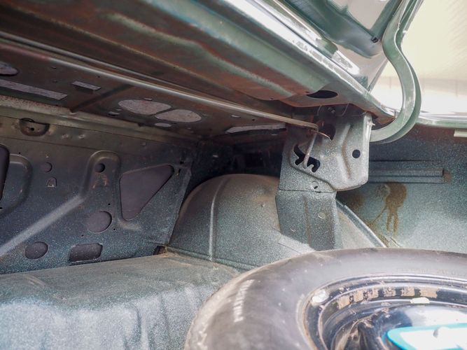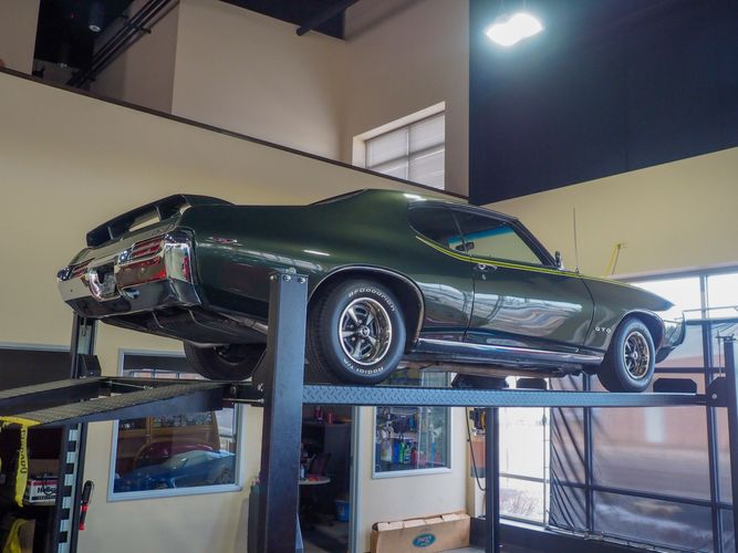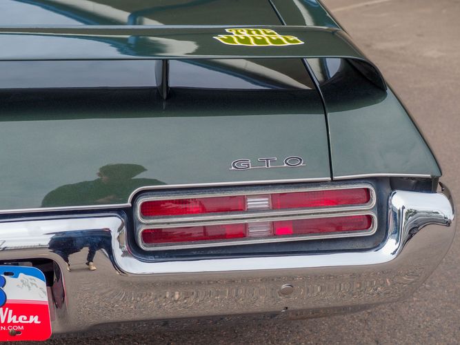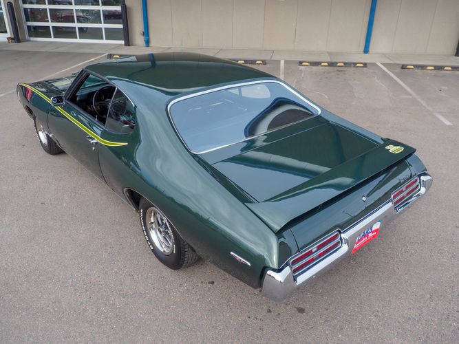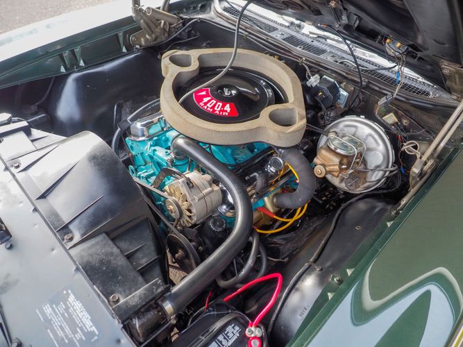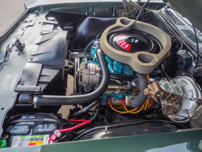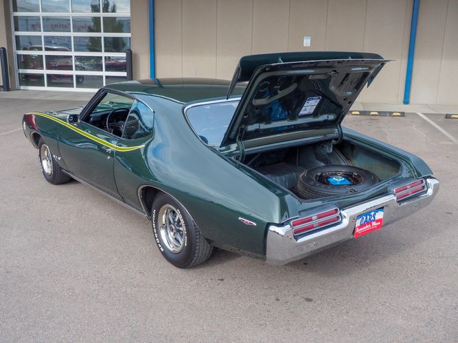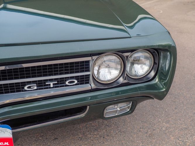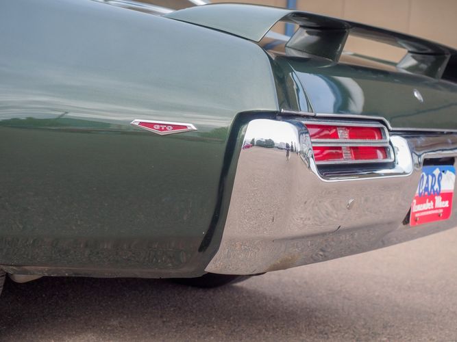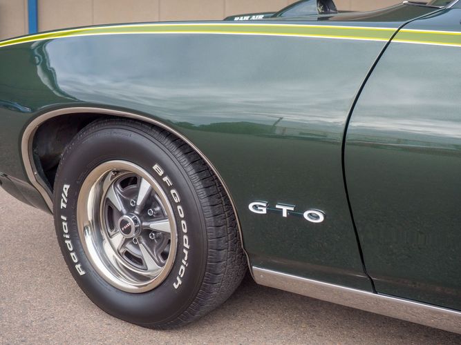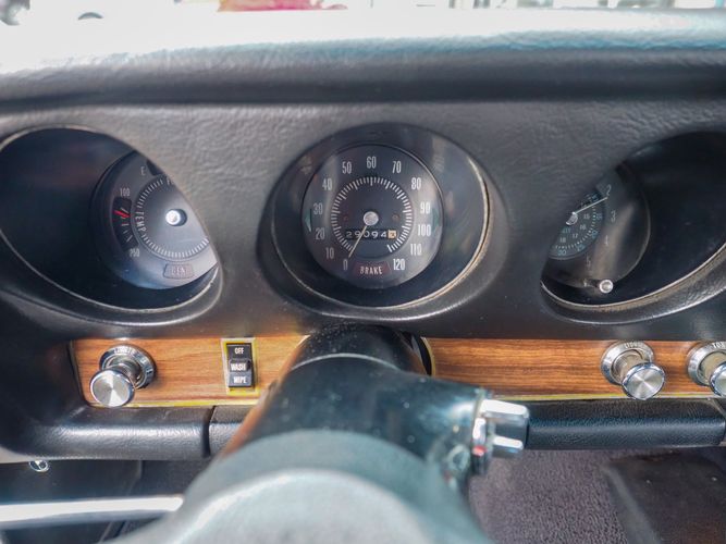 The appearance of this GTO is a very good driver quality. It is finished in its original color; Midnight Green. The color makes this a rare and unique Judge as you do not typically see them in this color. The black bucket console interior retains a lot of originality, we would consider the interior of this car to be in survivor condition. The sheet metal on the car appears to be all original as far as the floors and quarter panels.