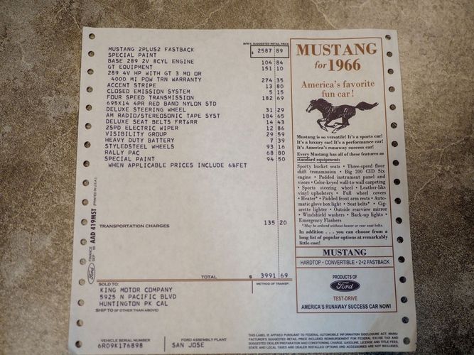 1966 Ford Mustang "K" Code HiPo Factory GT Fastback